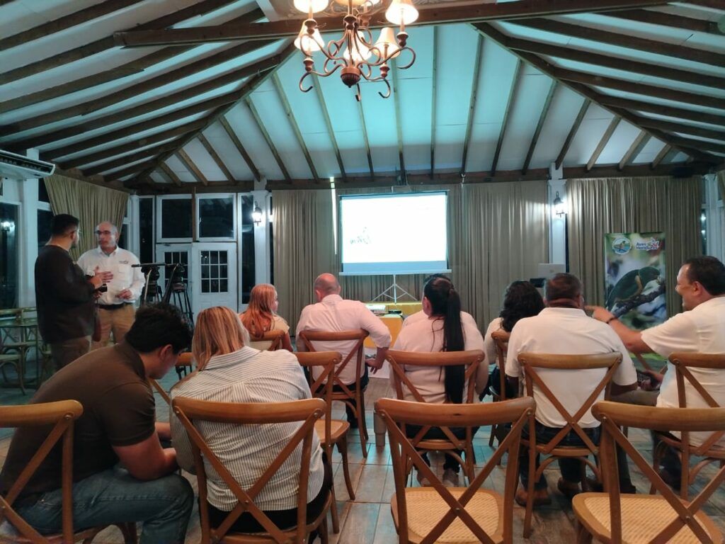 Aves Honduras por su parte, encabezado por Oliver Komar (presidente), miembros del Staff y guías de la región, se encargó de dirigir las actividades, que iniciaron con una charla magitral del Dr. Komar en Finca Las Glorias. Esa misma tarde, realizamos una gira de observación de aves en barco en El Lago de Yojoa, mostrando a los participantes el uso de binoculares, reconocimiento y registro de especies del humedal. Al día sigueinte visitamos el Santuario Aves Honduras Luna del Puente, donde además de las aves, se disfrutó del característico chocolate de este Santuario. Finalmente acudimos al Santuario Bosque Dorado Nature Lodge en Siguatepeque, donde se celebraba la ampliación territorial del Santuario.