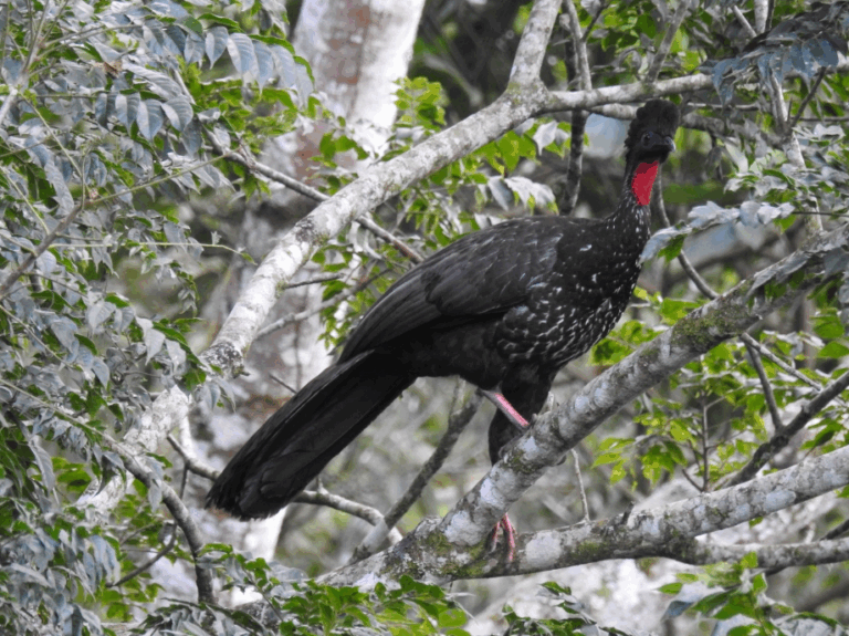 Su ave insignia es la Pava Crestada (Penelope purpurascens), una especie catalogada como Casi Amenazada según la Lista Roja de la UICN. Este ave de gran tamaño y larga cola habita en bosques tropicales y subtropicales, donde suele observarse en las copas de los árboles o volando con agilidad a través del dosel. Debido a la presión por la cacería, es una especie escurridiza que raramente se encuentra cerca de asentamientos humanos, refugiándose principalmente en áreas protegidas donde se desplaza en parejas o grupos pequeños. A la distancia, su plumaje luce un tono oscuro casi negro, pero de cerca revela un elegante punteado blanco en el cuerpo que contrasta con su vibrante papada roja brillante. Aunque posee una cresta espesa, esta suele mantenerse discreta, completando la apariencia majestuosa de esta guardiana del bosque.